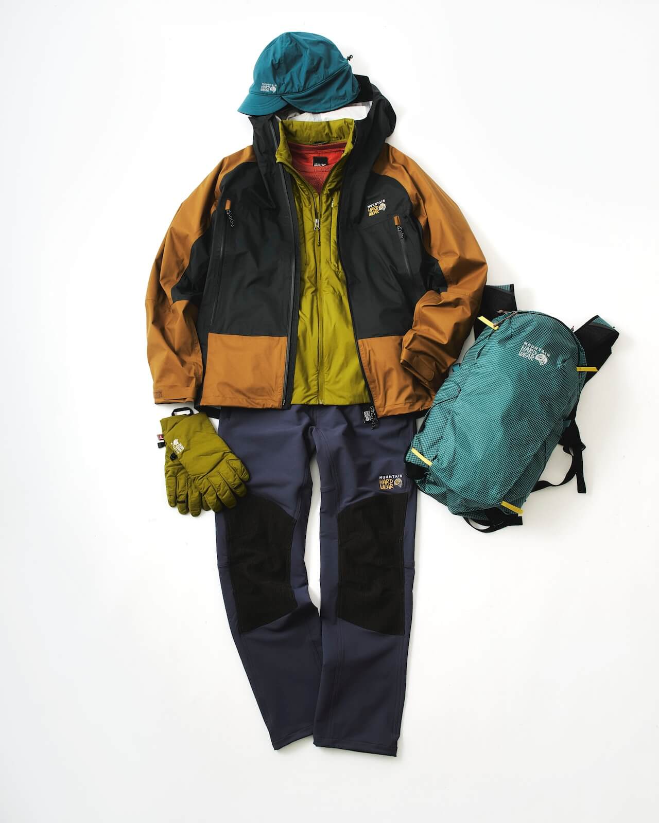 レインジャケット/コヒージョンジャケット¥36,300、ミドルレイヤー/コアアロイジャケット¥34,100、ベースレイヤー/エアメッシュロングスリーブクルー¥12,100、パンツ/ダブルドラゴンアルパインパンツ¥22,000、キャップ/ポーラテックハイロフトキャップ¥6,600、グローブ/コアステイシスグローブ¥11,000、バックパック/リックティスプリット20Lバックパック¥19,800