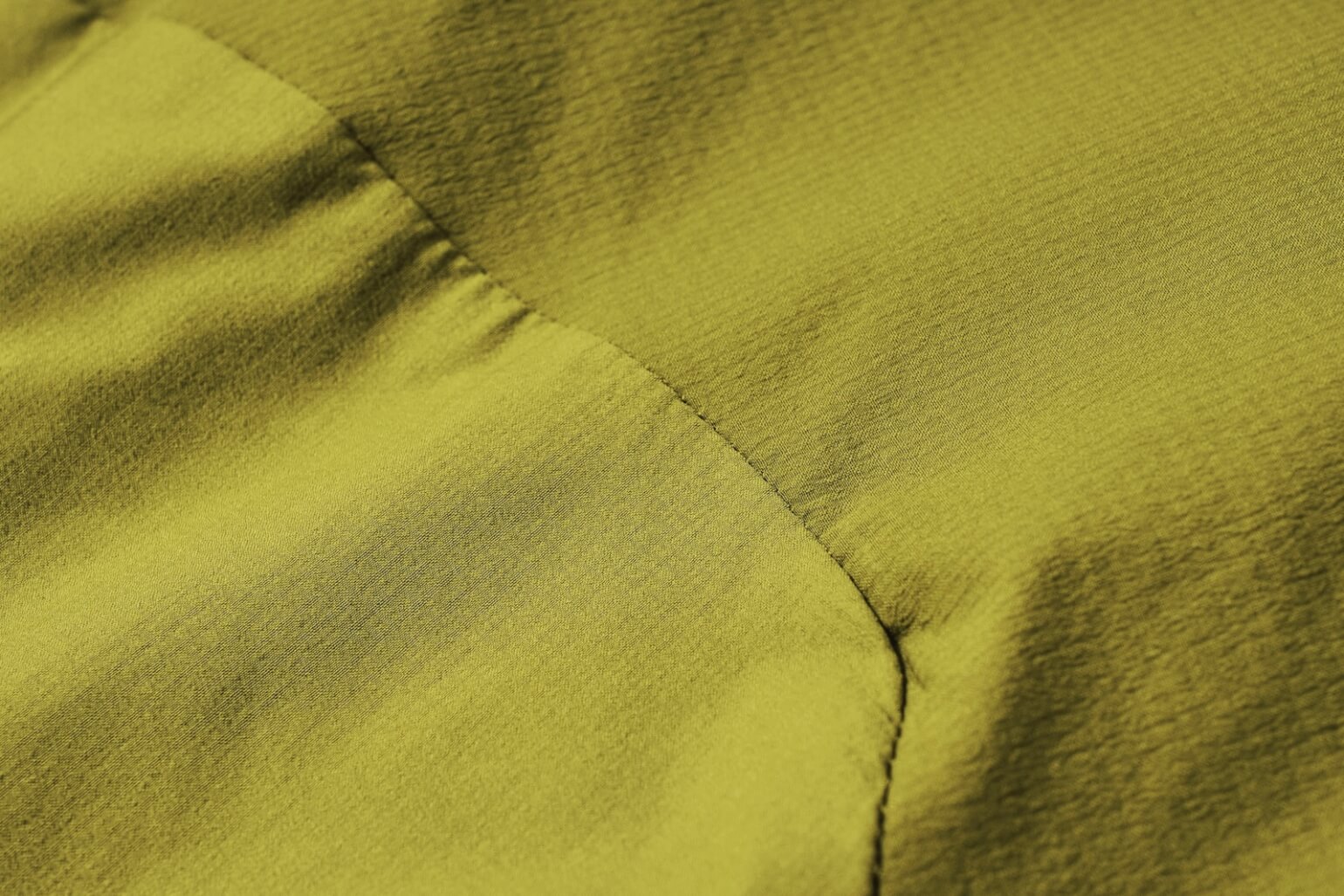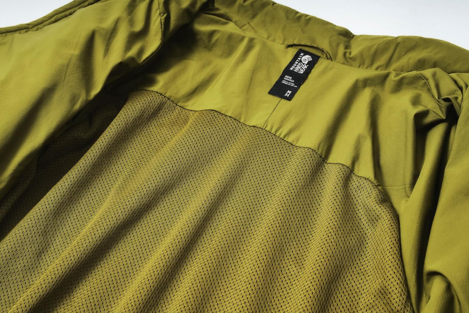 とくに中綿のマッピングはよく考えられており、冷えを感じやすい首元をカバーするために衿部分に80g、前身頃や袖には40gのPrimaloft® Gold Activeのシートを封入。逆に汗をかきやすい脇下には中綿を入れないことで、保温とオーバーヒート防止の両立を実現している。